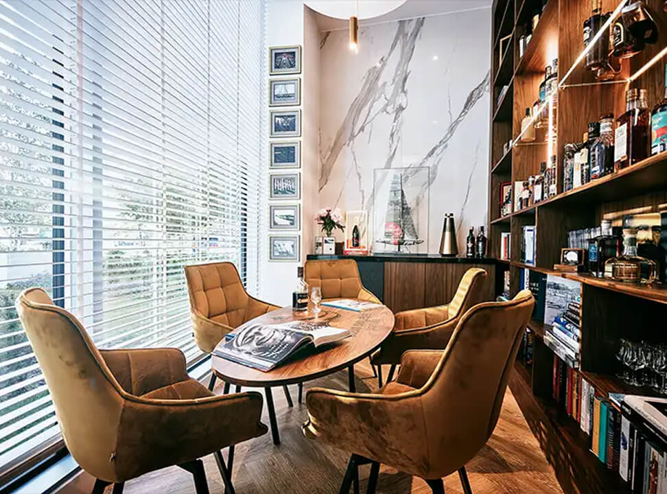 Biblioteka klubowa to czarująca przestrzeń, w której pasjonaci jachtingu, morza, literatury i doskonałych trunków mogą zatopić się w lekturze, czerpiąc wyjątkowe doznania z aromatów ponad 130 butelek rumów oraz starannie dobranych armaniaków. To inspirujące miejsce, które pobudza do kreatywnej dyskusji. Stanowi wysublimowane tło dla kameralnych spotkań towarzyskich czy biznesowych interakcji. Jego intymny klimat harmonizuje z malowniczym krajobrazem Zatoki Gdańskiej. Czas w bibliotece płynie inaczej, odmierzany przez oryginalny okrętowy zegar z 1939 roku. Goście regulują go stosownie do własnych potrzeb. Pobyt na pokładzie Super Yachts Club to wyjątkowy rejs – choć już na lądzie, to w rytmie fal. Dzięki temu wypoczynek zyskuje nową jakość i pozamiejski charakter z widokiem na wodny bezmiar.